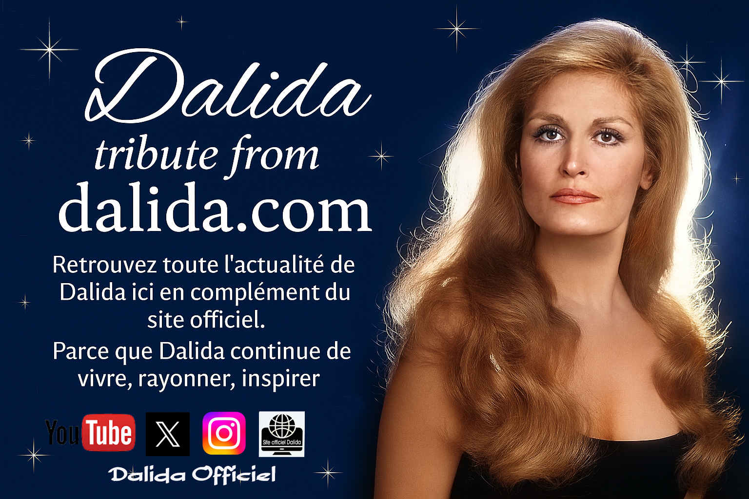Une page d’informations dédiée à l’actualité de Dalida, ses archives rares, ses hommages et ses projets à venir.